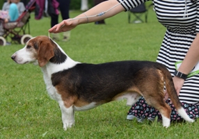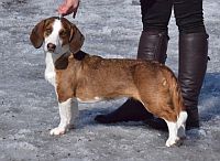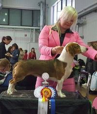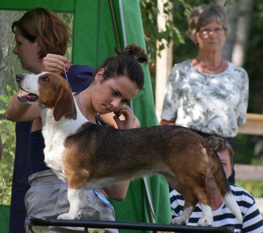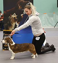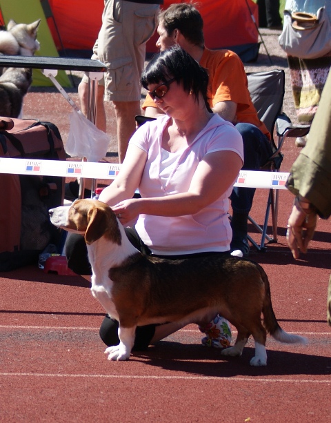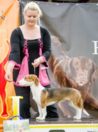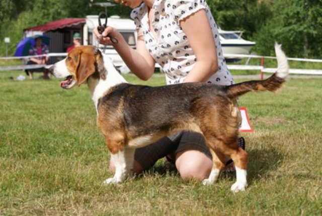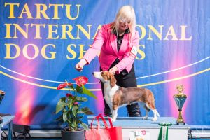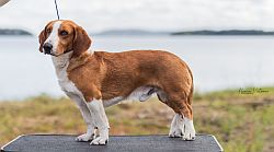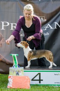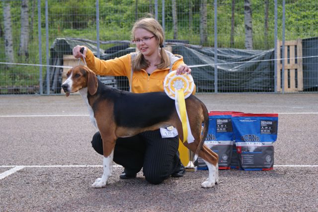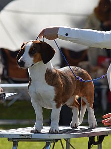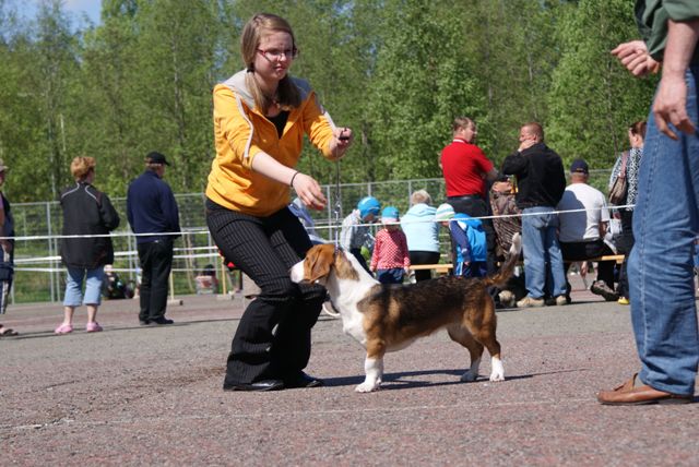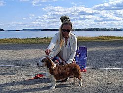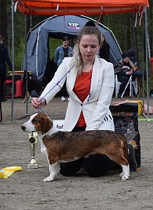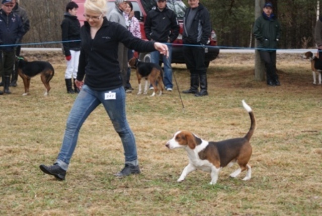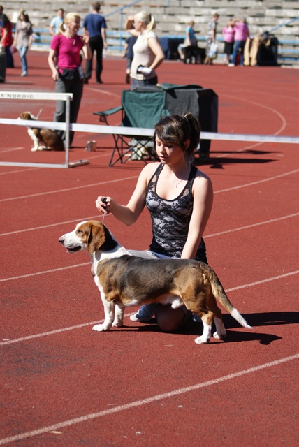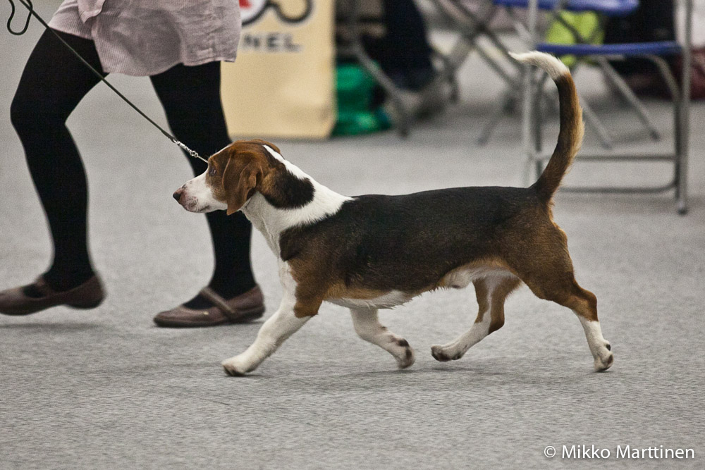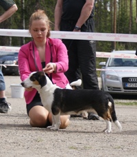 kuva: Hanna Viitanen33,5 cm. Rotutyyppi erinomainen. Kevyesti liikkuva narttu, jolla hyvät ulottuvuudet rungossa, eli kaula ja rintakehä. Hieman kapea kuono-osa, mutta hyvä pään profiili. Hieno etuosa. Hyvä lantio ja hyvät takakulmaukset. Raajat hyvin rungon kulmissa. Liikkuu hyvällä askelpituudella. Voisi kuitenkin liikkua hieman reippaammin.