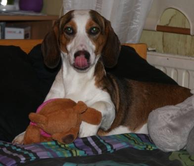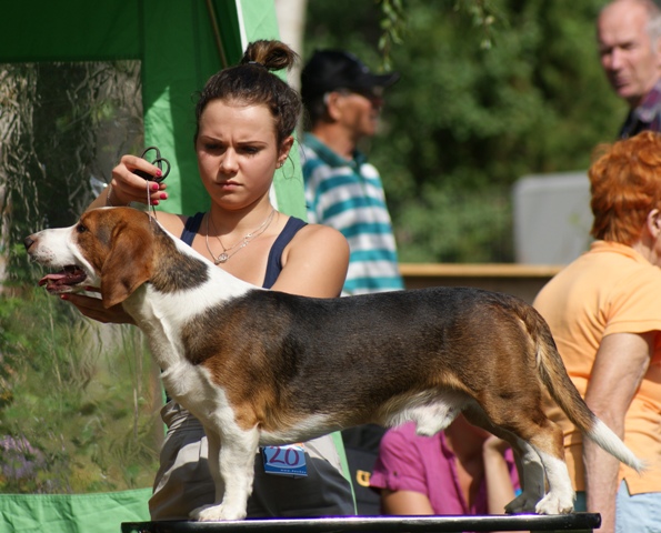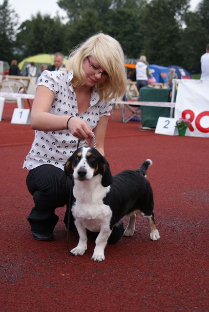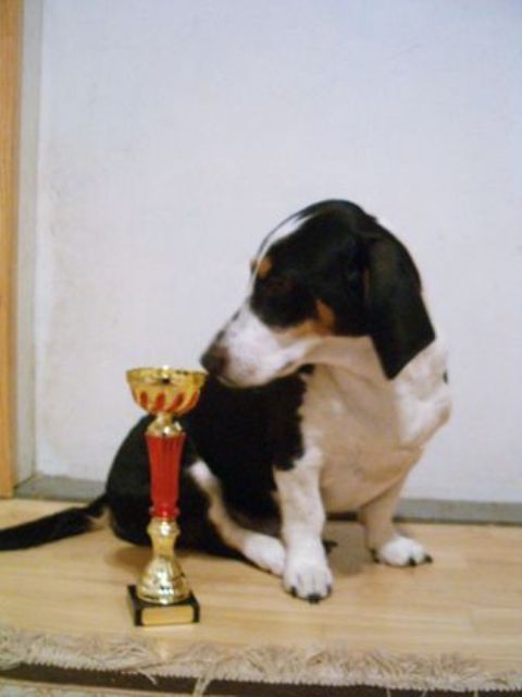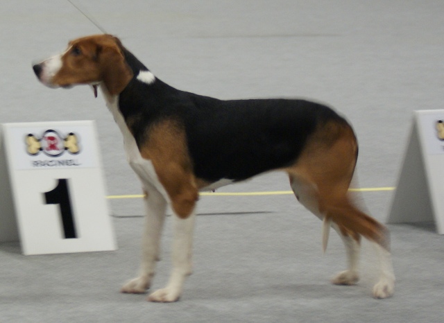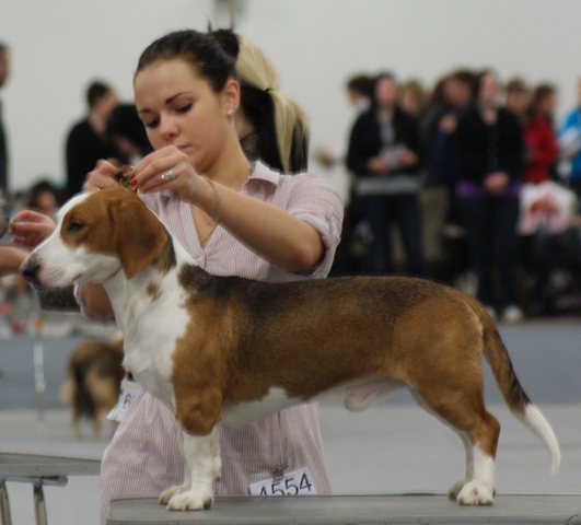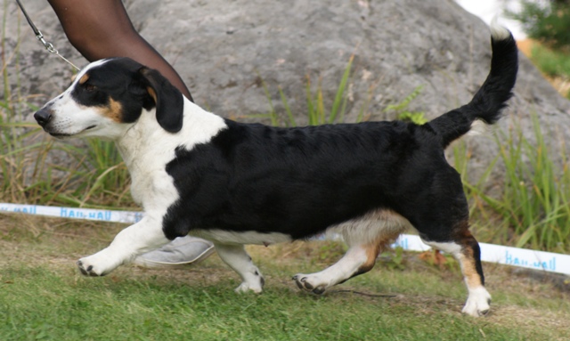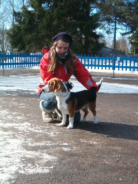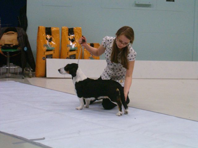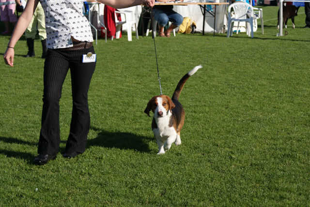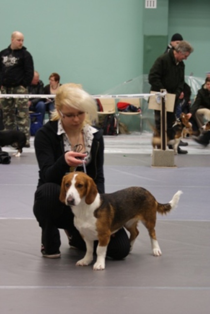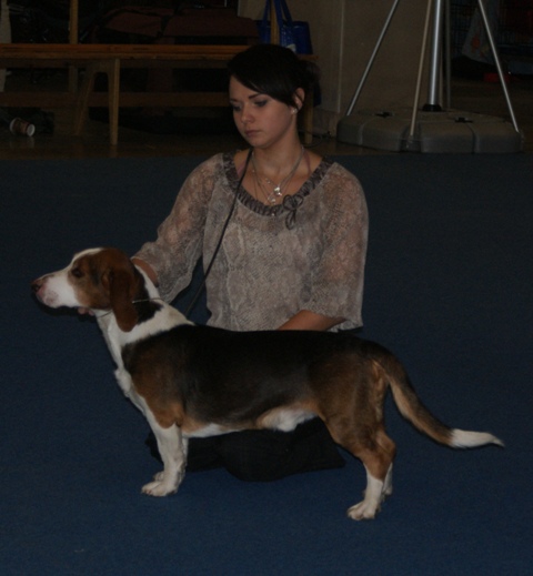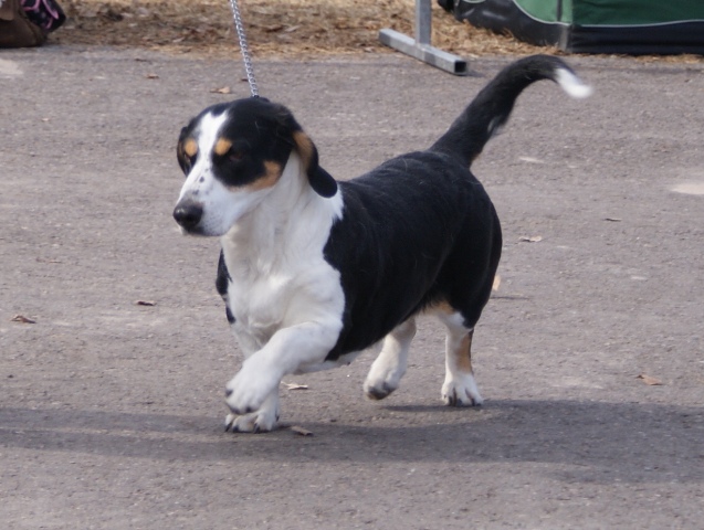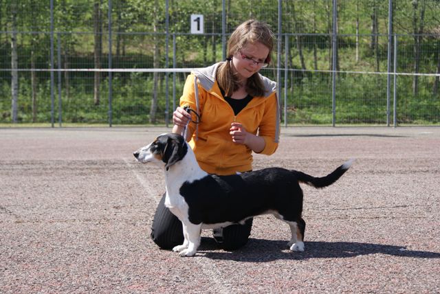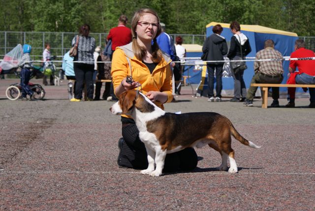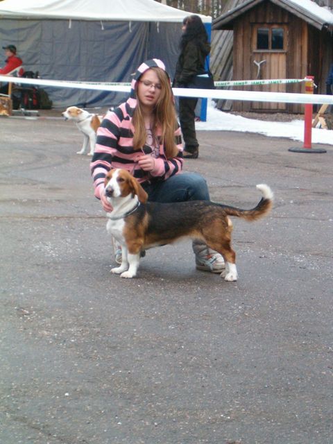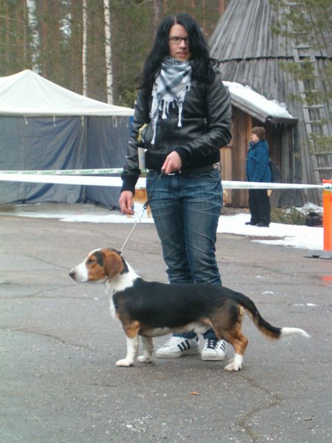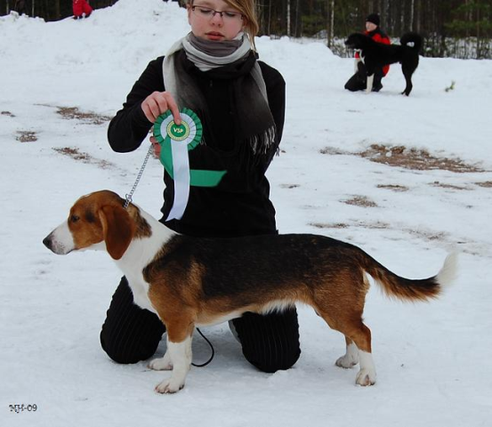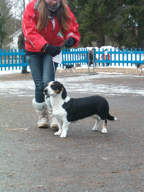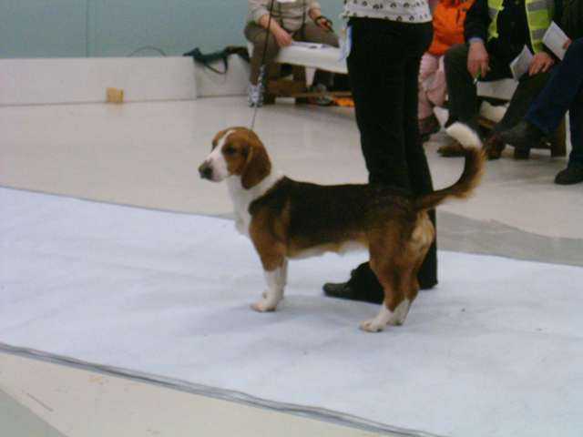 Kolmivärinen, 36 cm. Mittasuhteiltaan hieman lyhyt. Kevytkuonoinen pää. Talvikirsu. Korvat voisivat kiertyä tiiviimmin, Kuiva kaula. Hyvä selkä. Riittävä raajaluusto. Raajat hyväasentoiset. Tasapainoiset kulmaukset. Rungossa liikkeessä hieman pehmeyttä. joustava liike. Rauhallinen luonn