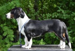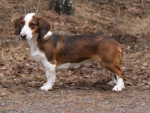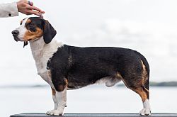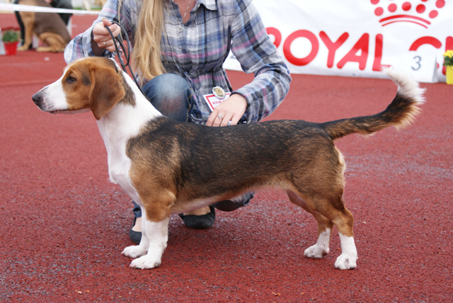 Kolmivärinen, 37 cm. Mittasuhteiltaan riittävä. Kevyehkö pää, lyhyet korvat. Kuiva kaula. Erinomainen ylälinja. Hyvä raajaluusto. Raajat oikea-asentoiset, riittävästi kulmautuneet. Erinomainen karvapeite. Joustava liike. Hyvin kannettu häntä. Oikea luonne.