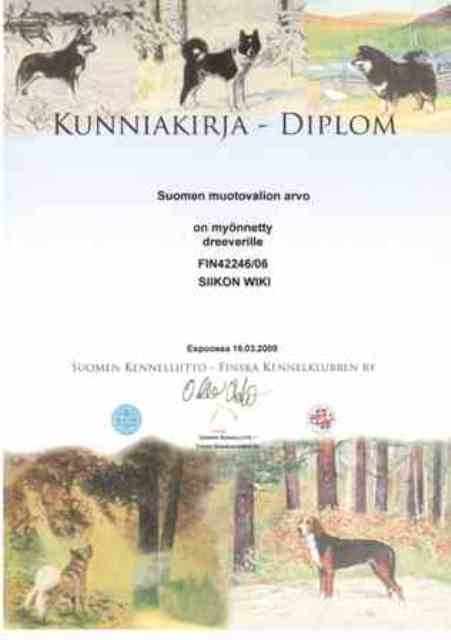 26.3. Wikille vahvistetiin Suomen Kennelliitossa 16.3.2009 FI MVA titteli