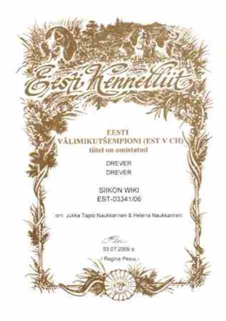 25.7. Raisan ja Wikin EE MVA titteli sai 3.7.2009 vahvistuksen Viron Kennelliitolta