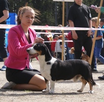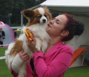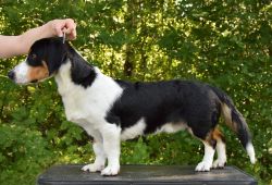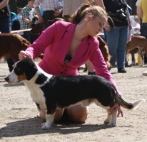 Kolmivärinen, 33 cm. Mittasuhteiltaan oikea. Kaunis pää, hyvät korvat. Kuiva kaula. Tiivis runko. Hyvä raajaluusto ja kulmaukset. Raajat erittäin hyvä asentoiset. Hyvä karvapeite. Joustava liike. Miellyttävä luonne. Upea esiintyminen.