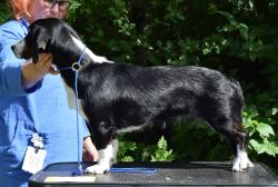 35 cm. Kolmivärinen. Rotutyyppi erittäin hyvä. Mittasuhteiltaan oikea. Hyvä pää, hyvin laskeutuvat korvat. Hyvä ylälinja. Vahva raajaluusto. Riittävät kulmaukset. Kyynärpäissä löysyyttä. Pitkähkö laineikas karvapeite. Liikkeessä kohoava häntä. Hieman ahdas takaliike. Luonne oikea.
