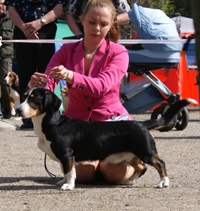 Kolmivärinen, 33 cm. Mittasuhteeltaan oikea. Hyvä pää ja korvat. Kuiva kaula. Hyvä runko ja raajaluusto. Raajat erittäin hyvä asentoiset. Tasapainoiset kulmaukset. Hyvä karvapeite. Hyvin kannettu häntä, joustava liike. Rauhallinen luonne.