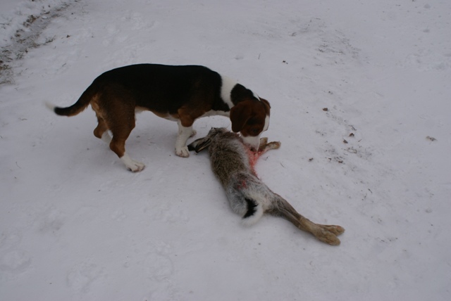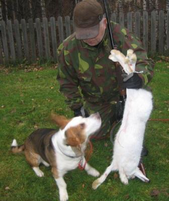 10.6. Kävimme katsomassa Räksy poikaa, oli hyvin kasvanut ja omistaja Reijo oikein tyytyväinen. Ajaa hyvin jänistä, ensimmäisellä metsästyskaudella saatu 7 jänistä.