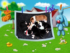 siitä pentuesta syntyi kuolleena 1 uros ja 1 narttu