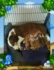 siitä pentuesta syntyi kuolleena 1 uros ja 1 uros 1,5 päivän päästä